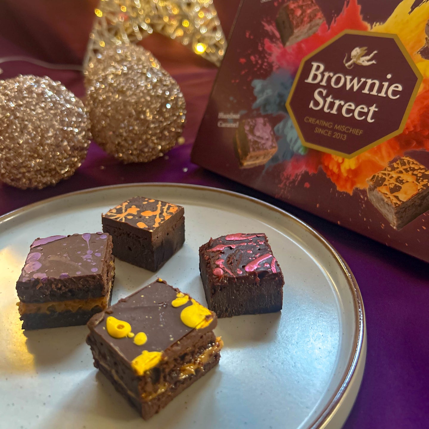 Our Quality Street–Inspired Brownie Box is a limited-edition selection of 16 rich dark chocolate brownie bites, inspired by iconic festive favourites.